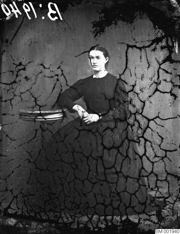 Plåtsamling från Ängelholmsfotograf. Porträtt. Sittande dam. Klädd i klänning. Helfigur.