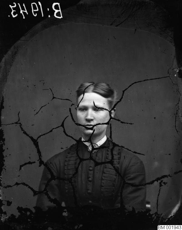 Plåtsamling från Ängelholmsfotograf. Porträtt. Sittande dam. Klädd i klänning. Halvfigur