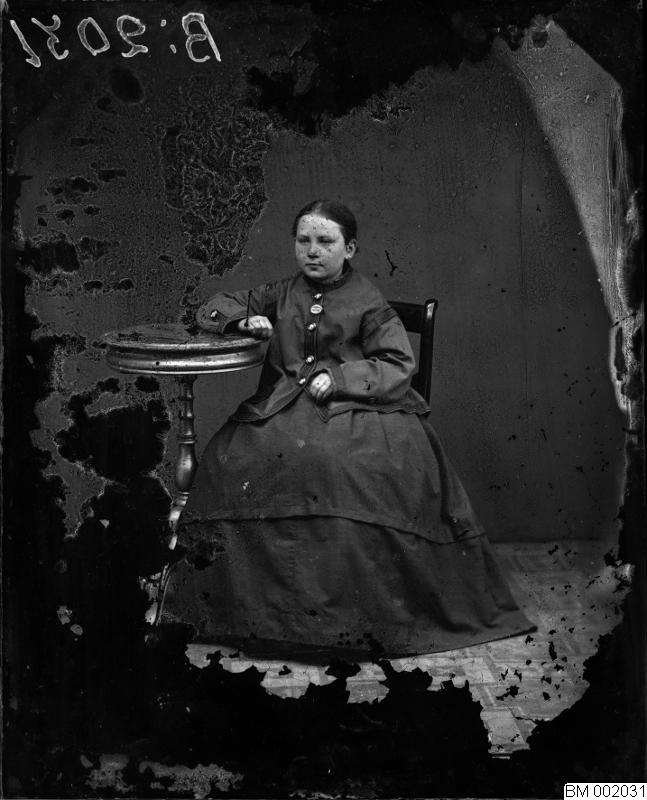 Plåtsamling från Ängelholmsfotograf. Porträtt. Sittande flicka, helfigur.
