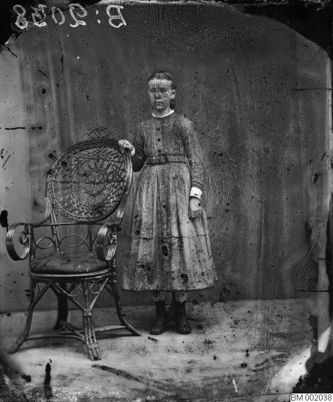 Plåtsamling från Ängelholmsfotograf. Porträtt. Stående flicka, helfigur. Klädd i klänning.
