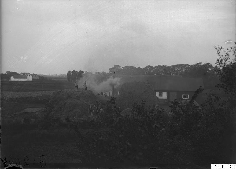 byggnader, åker, höstack, rök, åkrar, bostadshus, skorsten, skorstenar, gårdar, lantbruk, höstackar, jordbruk, hus, byggnad, gård