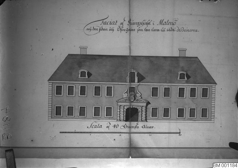 Bild som visar Malmö, kvarter 45. Residenset. Stobaus förslag 1720-talet. Foto taget 1944.