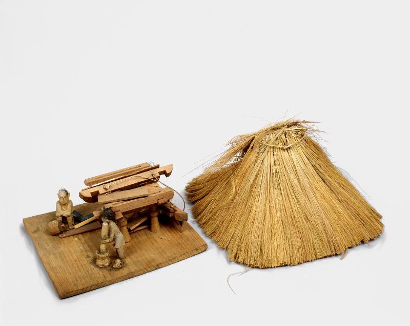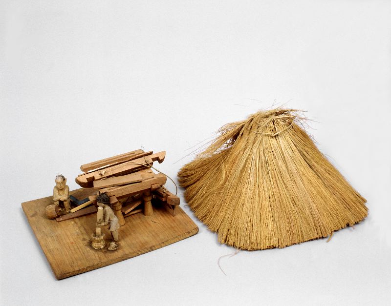 Modell av hus och figurer. Skadad.