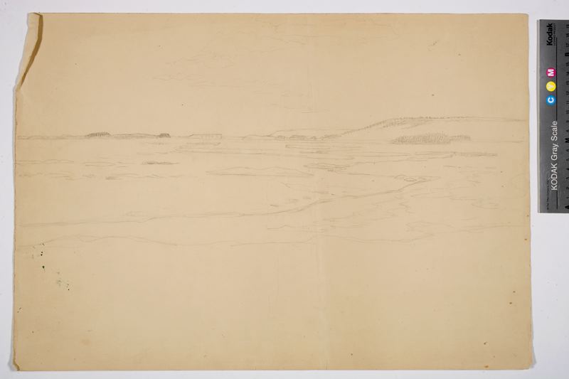 Blyertsskiss av Olof Gylling. Kustlandskap, oavslutad?