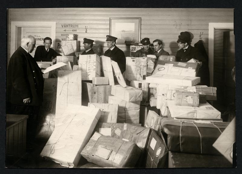 ROO 015402 :: postterminaler, paket, man, postterminal, män