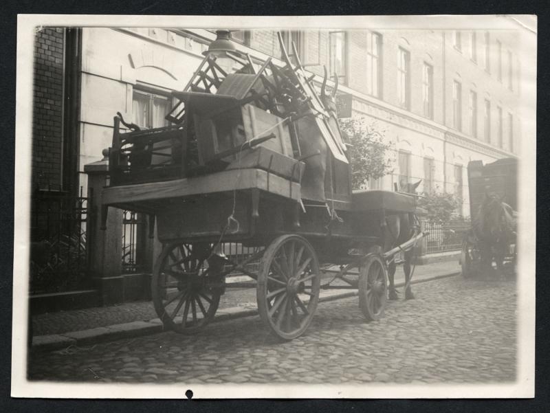 ROO 015425 :: flyttlast, gata, häst, hästvagnar, hästar, flyttning, möbel, möbler, gator, Hästvagn