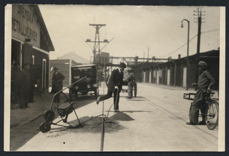 Okänt årtal. Industriområde, reperation av el-ledning.