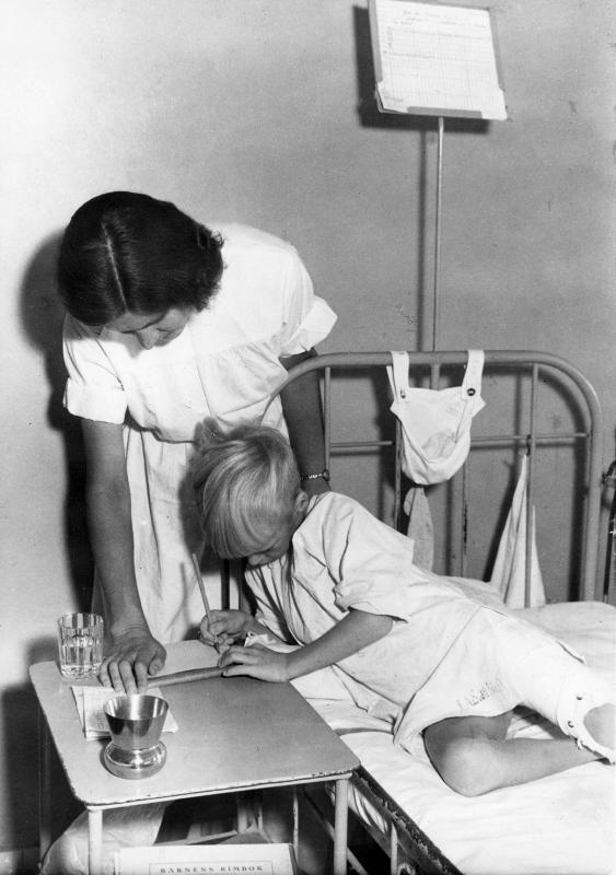 ROO 004858 :: kvinna, pojke, kvinnor, sjukhusskolan, barn, mas, pojkar, malmö allmänna sjukhus, patient, personal, sjukvård