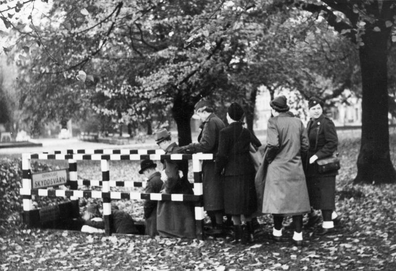 ROO 004961 :: kvinna, kvinnor, man, luftskyddsövning, flyglarm, män, skyddsrum