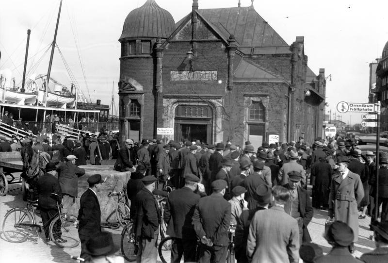 danskar; folksamling; färja; skeppsbron; tullvisitationslokal