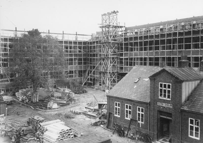 - Österportskolan byggs, i förgrunden en gammal skola Östra skolan.