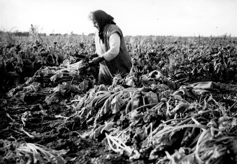 ROO 005215 :: åkerslund, kvinna, betesfält, kvinnor, exteriör, åker, betor, beta, betupptagning