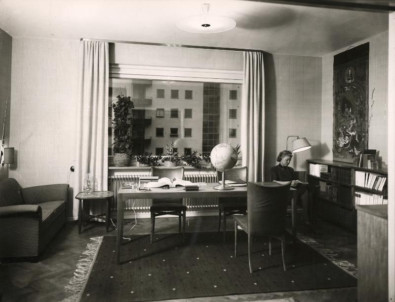 - Utställningen VI.BO. på Riberhus. Interiör från direktörens våning, utställare: Svenskt Tenn - Nordiska Kompaniet studio.