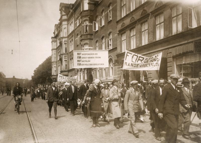 gatuvy, maj, proletär, kapitalism, folksamling, plakter, amiralsgatan, flagga, demonstration, folksamlingar, demonstrationståg, kapitalismen, parader, exteriör, plakat, revolution, flaggor, göta, första, parad, kafferosteri, demonstrationer