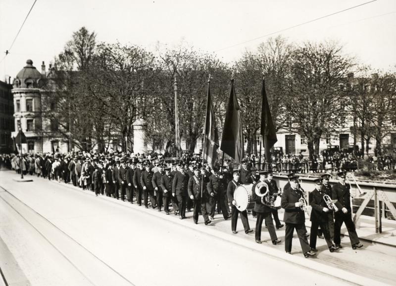- Första Majdemonstration i Malmö. På Amiralsbro på väg till Folkets Park.