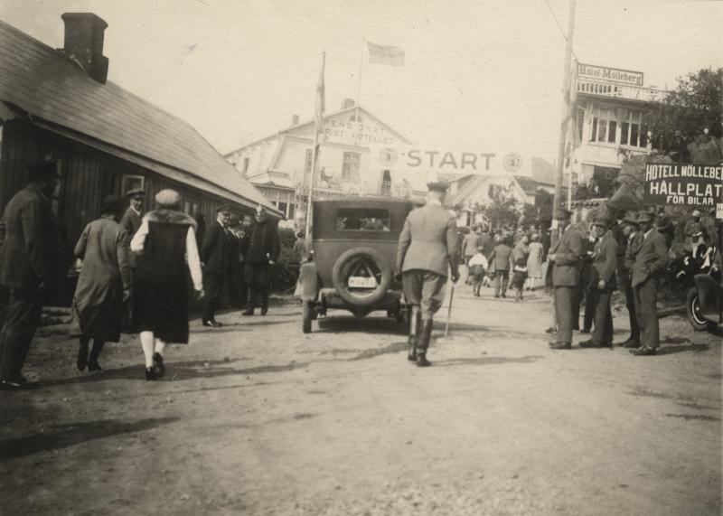 ROO 005610 :: byggnader, tävlingar, publik, biltävling, fasad, bil, biltävlingar, mölle, landsvägar, start, landsväg, bilar, hotell, tävling, startlinjen, byggnad, fasader, mölleberg