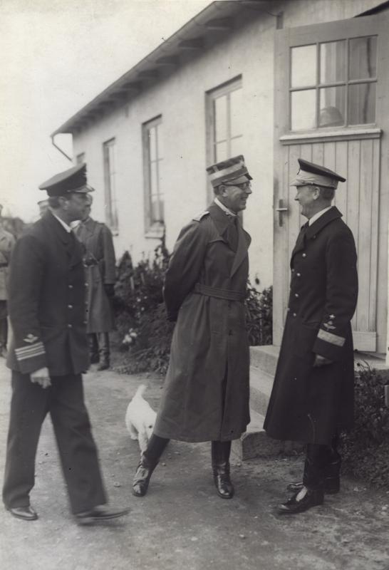 - Skånemanövern. Fr.v. stationschefen på Ljungbyhed major Lundström, kronprins Gustaf Adolf, och general Fries.