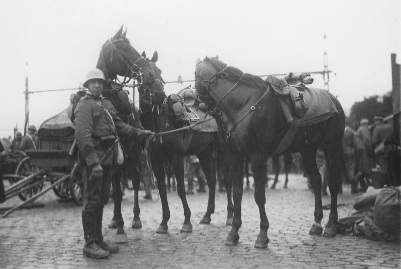 ROO 010869 :: soldater, skånemanövern, militärmanöver, soldat, militärväsen, häst, manöver, hästar, militärutrustning, man, män, militär