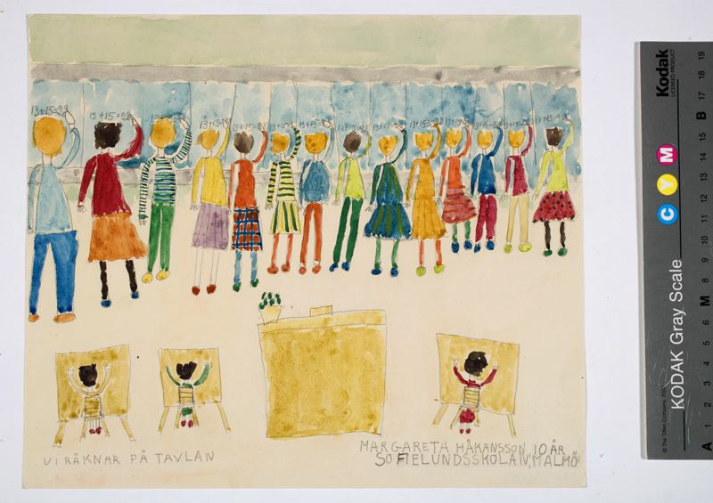 Skrivet med blyerts på framsidan: Vi räknar på tavlan / Margareta Håkansson, 10 år / Sofielundsskolan, Malmö