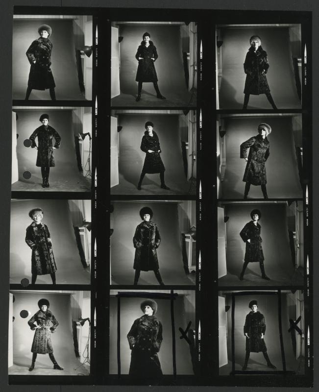 ODR 000528 :: päls, kvinna, pälsmössa, kappa, modell, studio