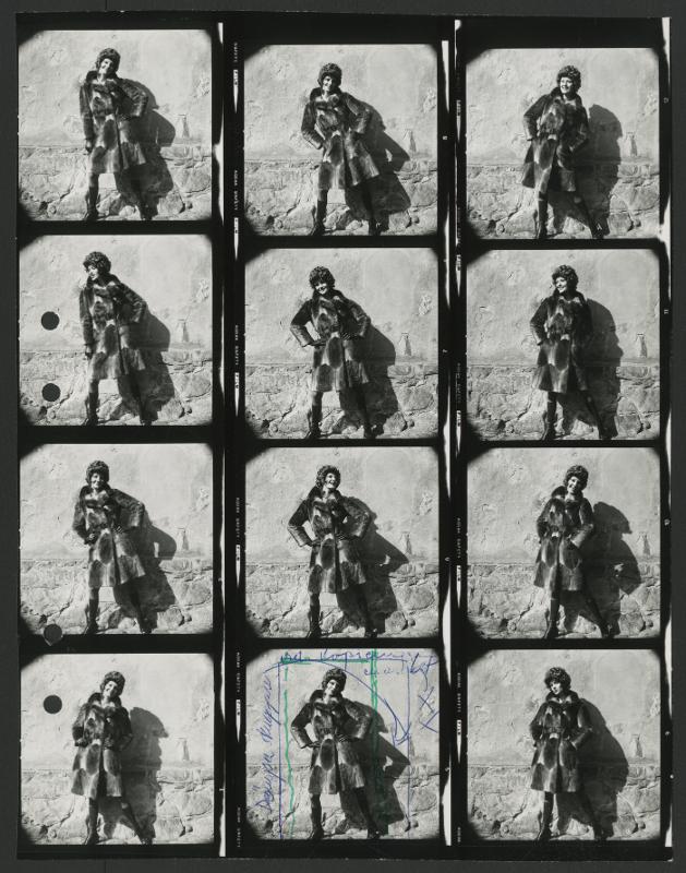 Kontaktkarta. Kvinna i pälskappa och pälsmössa. Tagningar för Wigens AB i Tranås.