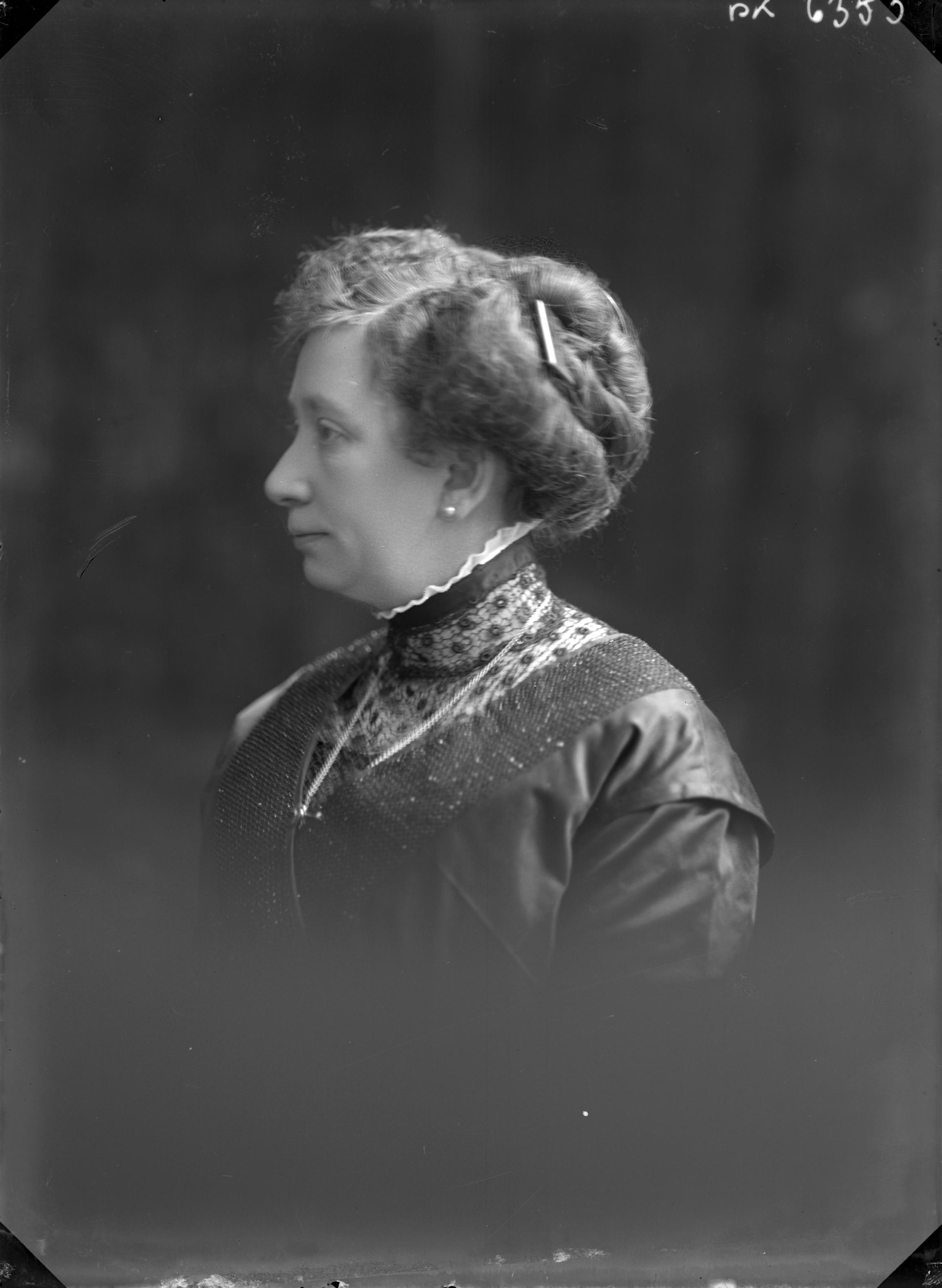 Porträtt i halvfigur av Ida Tilly, kapptillskärerska.
