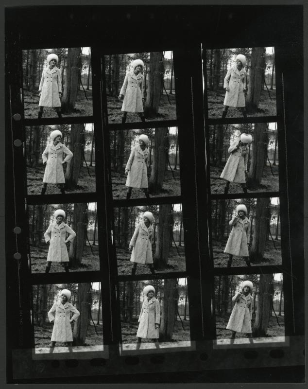 Kontaktkarta. Kvinna i pälskappa och pälsmössa.