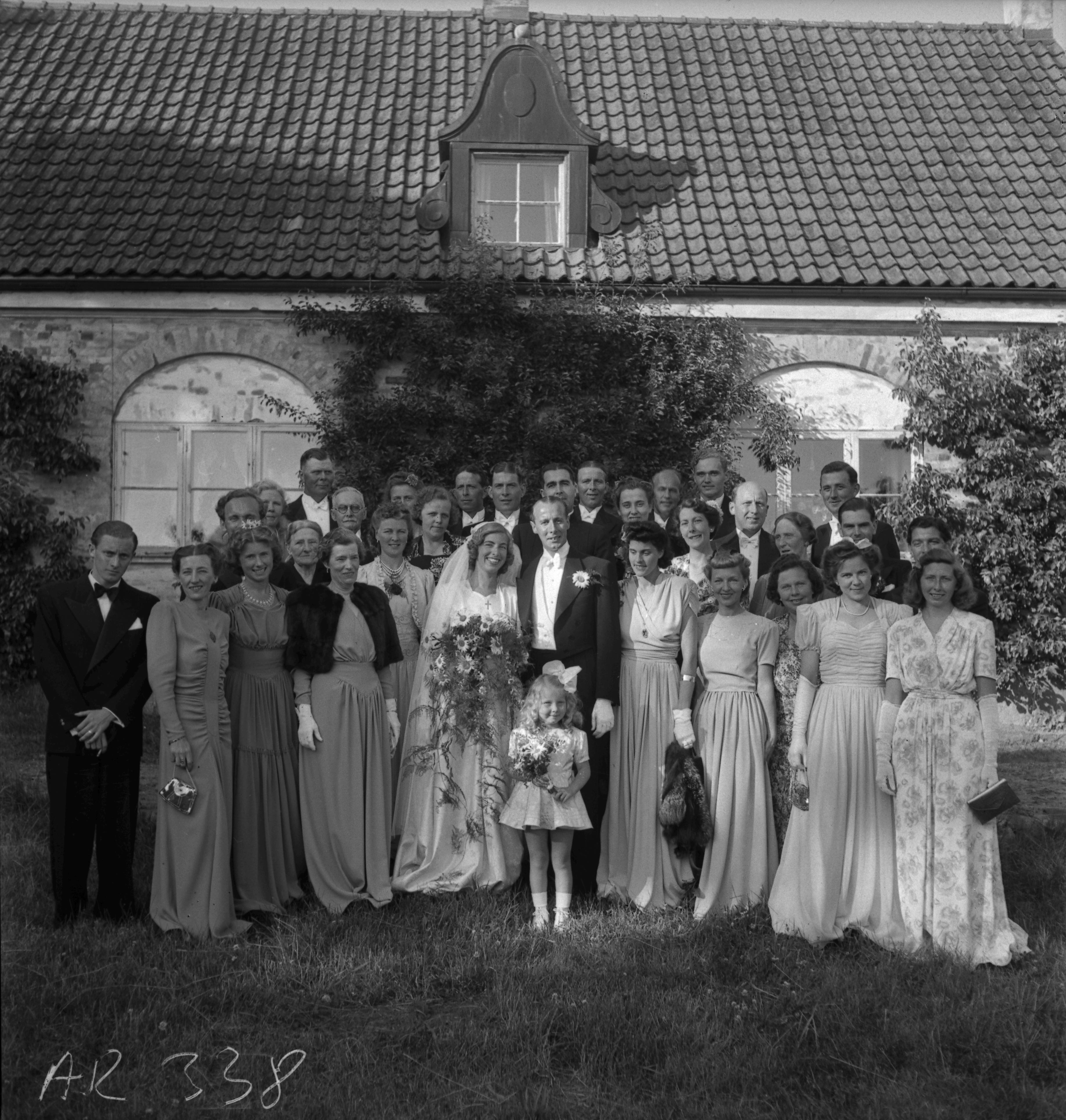 AR 000338 :: bröllop, vigsel, brudpar, gruppbild, bröllopsgäster