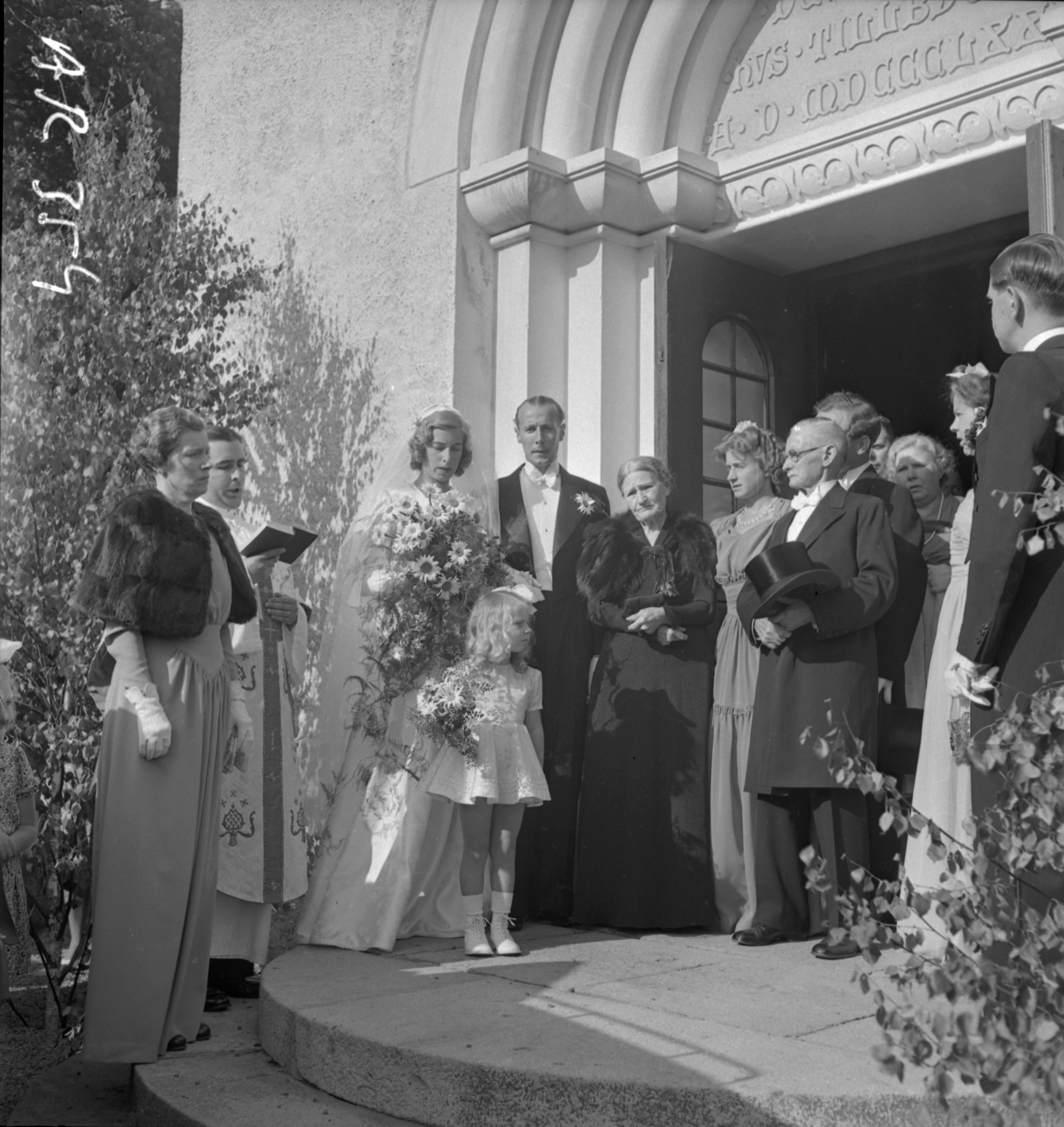 Alvetz-Hedeling-brudpar m. fl. vid kyrkan, Lundsholm
