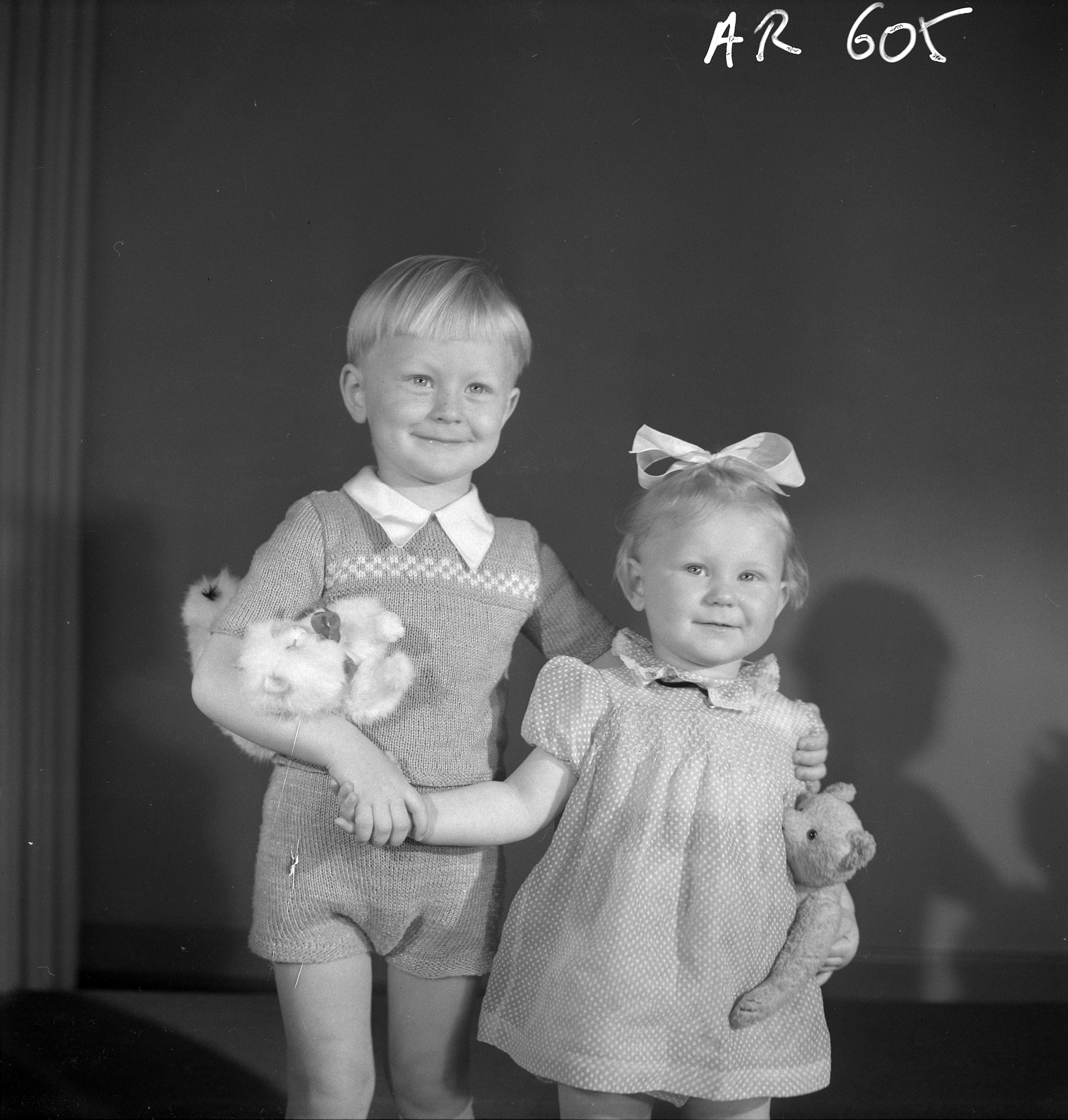 Dir. Anders Månsson - flicka och pojke, med kramdjur, halvfigur