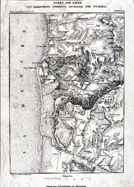 Kartblad över hamnarna till Ambleteuse, Wimereux, Boulogne und Etaples. Text: Karte der Häfen von Ambleteuse, Wimereux, Boulogne und Etaples