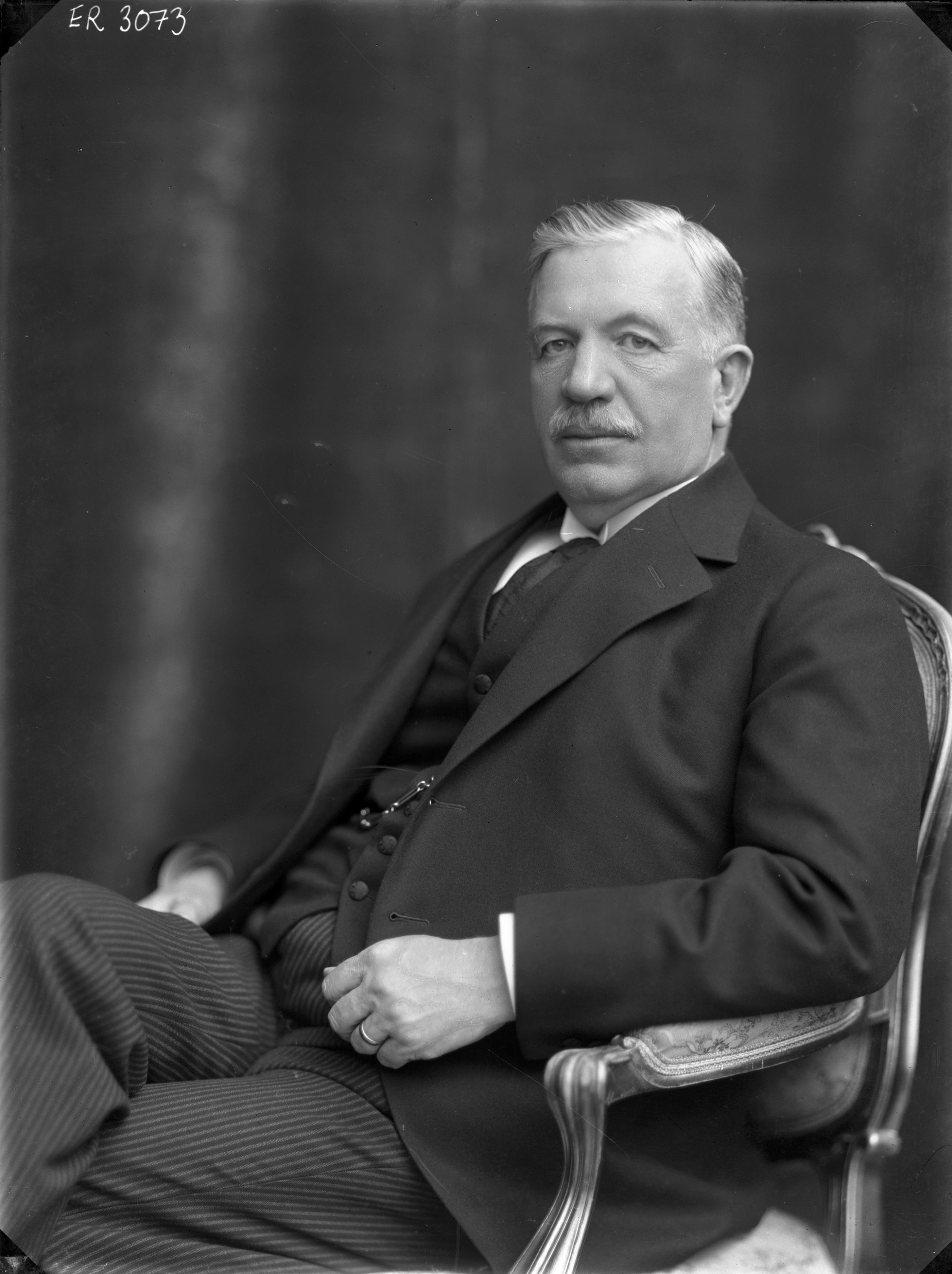 Porträtt i helfigur av grosshandlare, direktör Nils Winkler, sittande i stol.