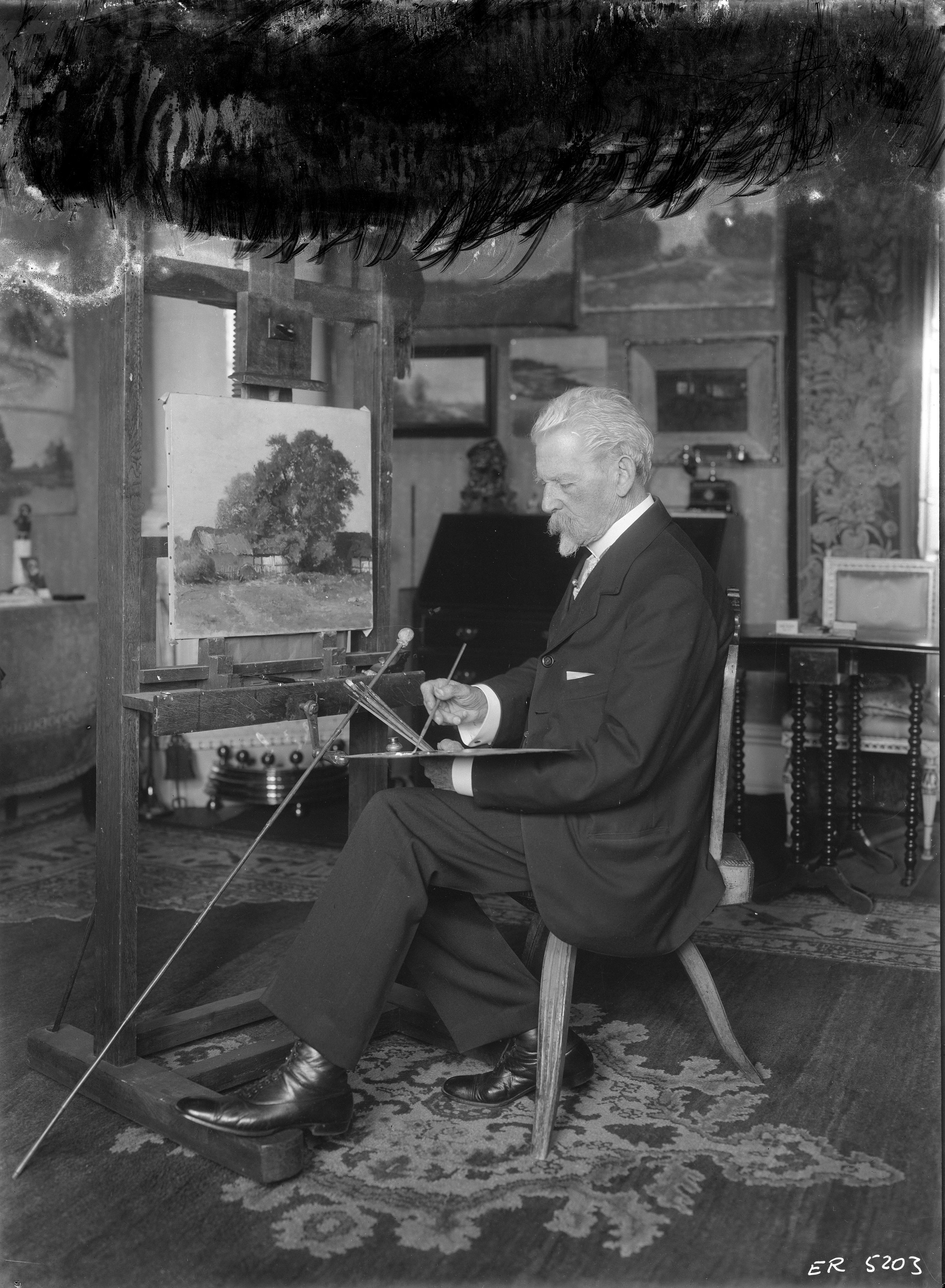 Hovmålare Gustav Rydberg, målar i ateljé.