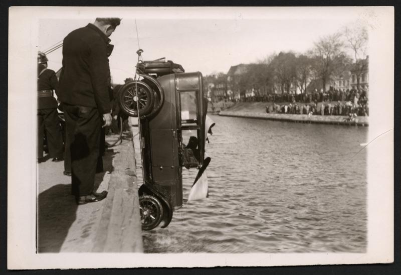 - Tragisk bilolycka i Malmö. En personbil, som kört över kanalkanten vid Fiskehamnsgatan, drages upp av brandkåren. Vid olyckan omkom en familj om fyra personer.