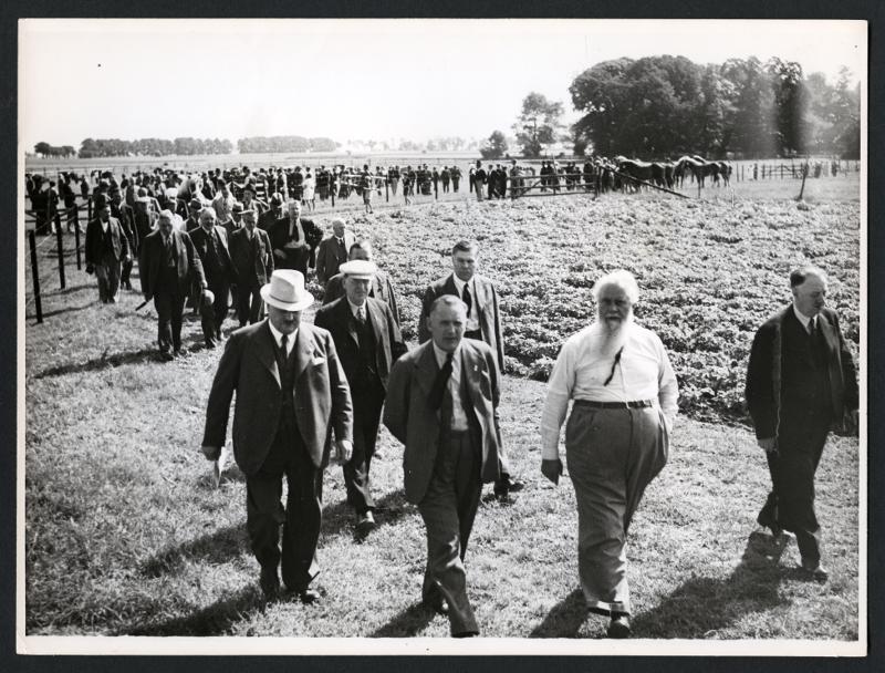 - Riksdagsmännen i Skåne. Från besöket hos Ola Larsson på Brosjödal vid Trelleborg, där hästuppfödningen studeras.