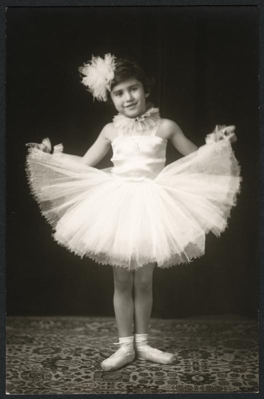 Barnporträtt. Flicka i balettkjol. Vykort. - Okänd år