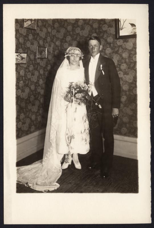 Grupporträtt, brudpar.