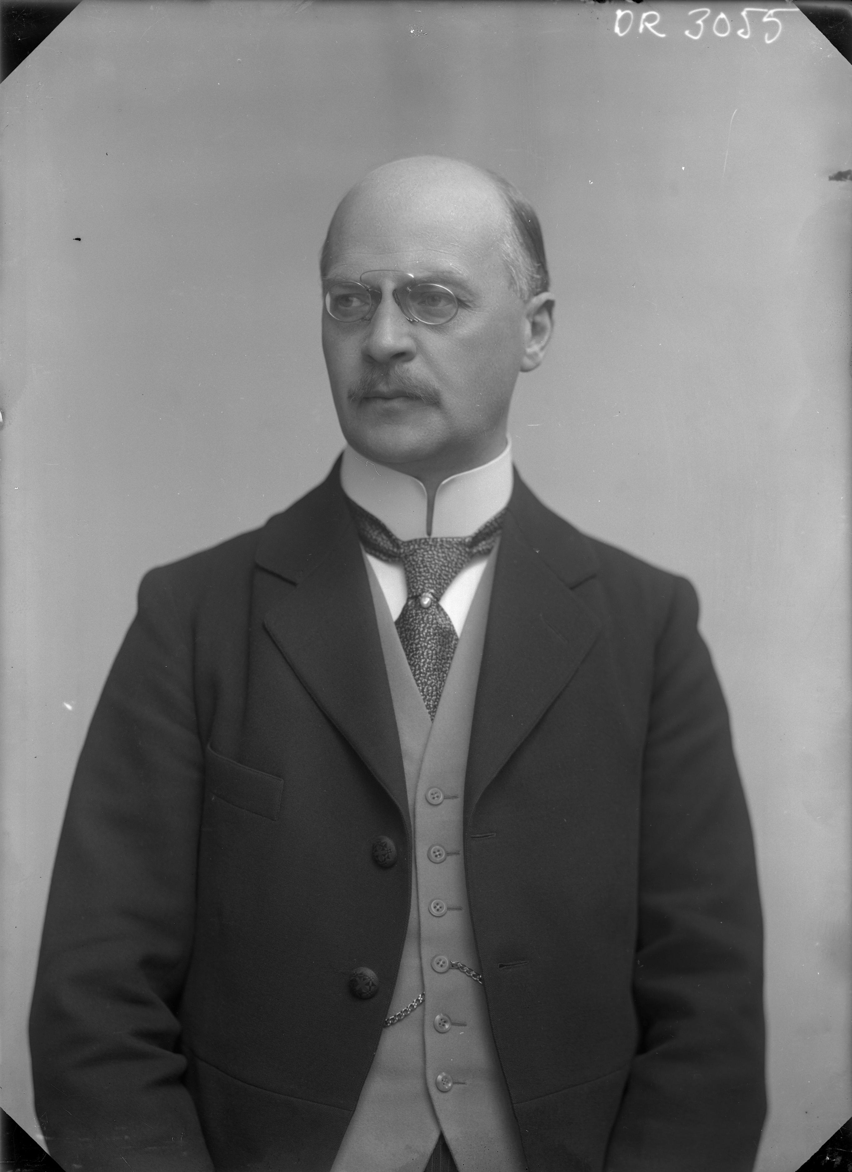 Porträtt i halvfigur av Emil Malmsten, disponent vid gödningsfabrik.