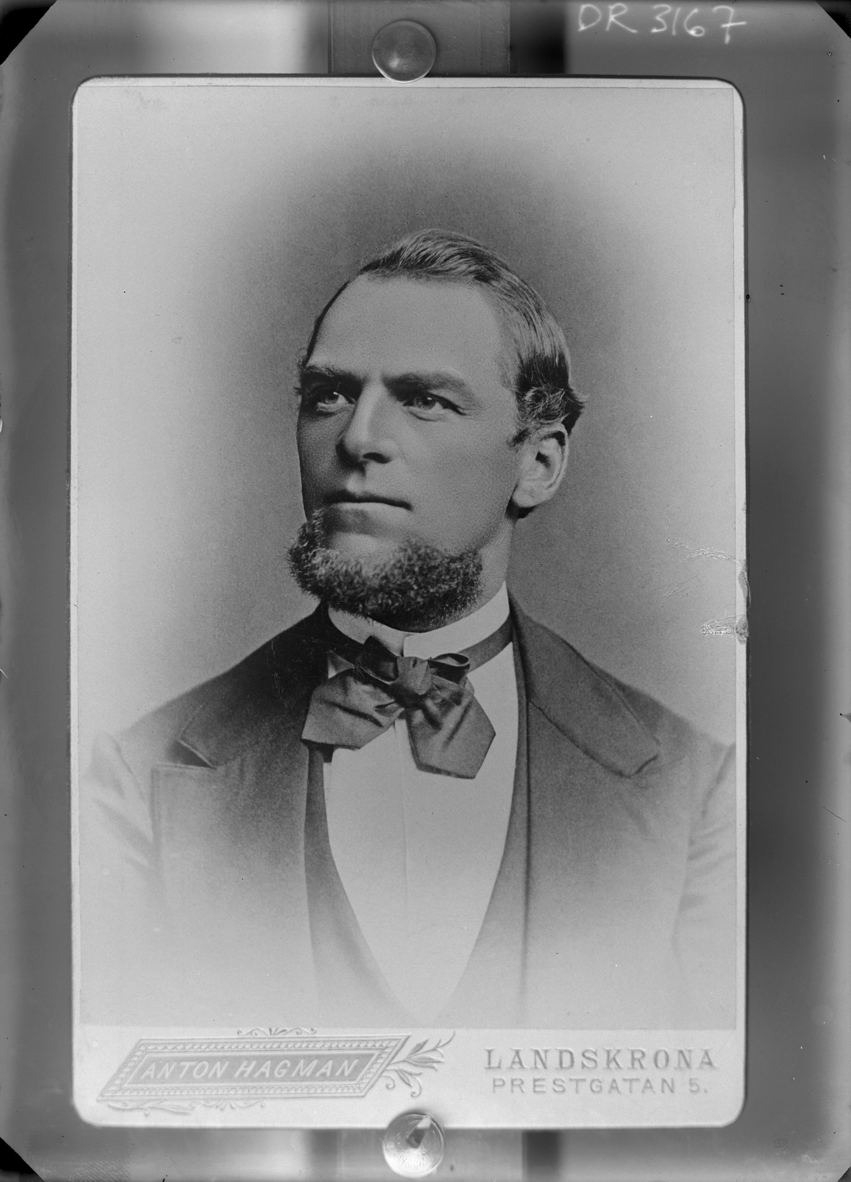 Porträtt i halvfigur av oidentifierad man. Reprofotografi beställt av disponent Emil Malmsten (1875-1940).