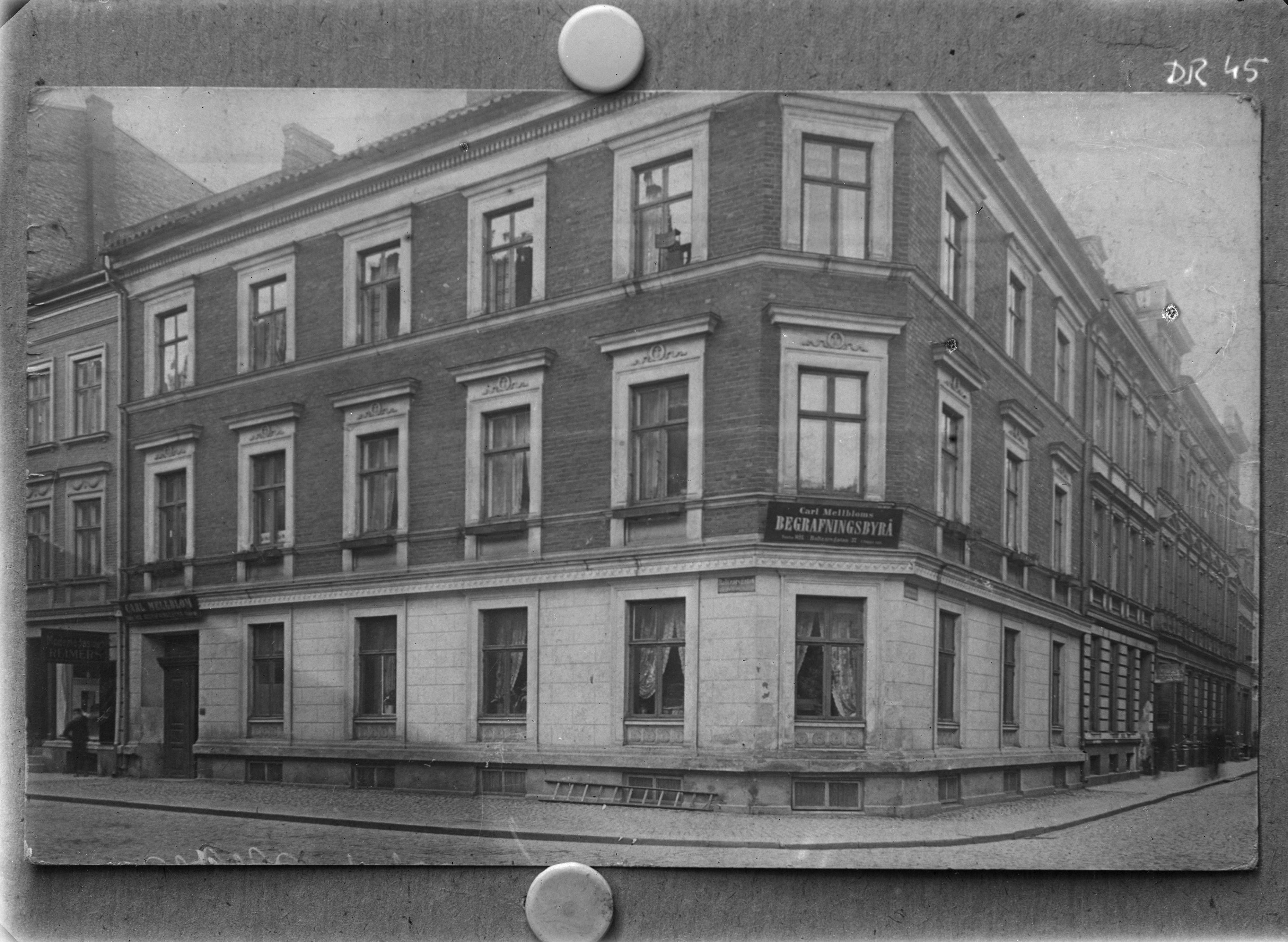 Exteriör av Carl Mellbloms begravningsbyrå, reprofotografi.