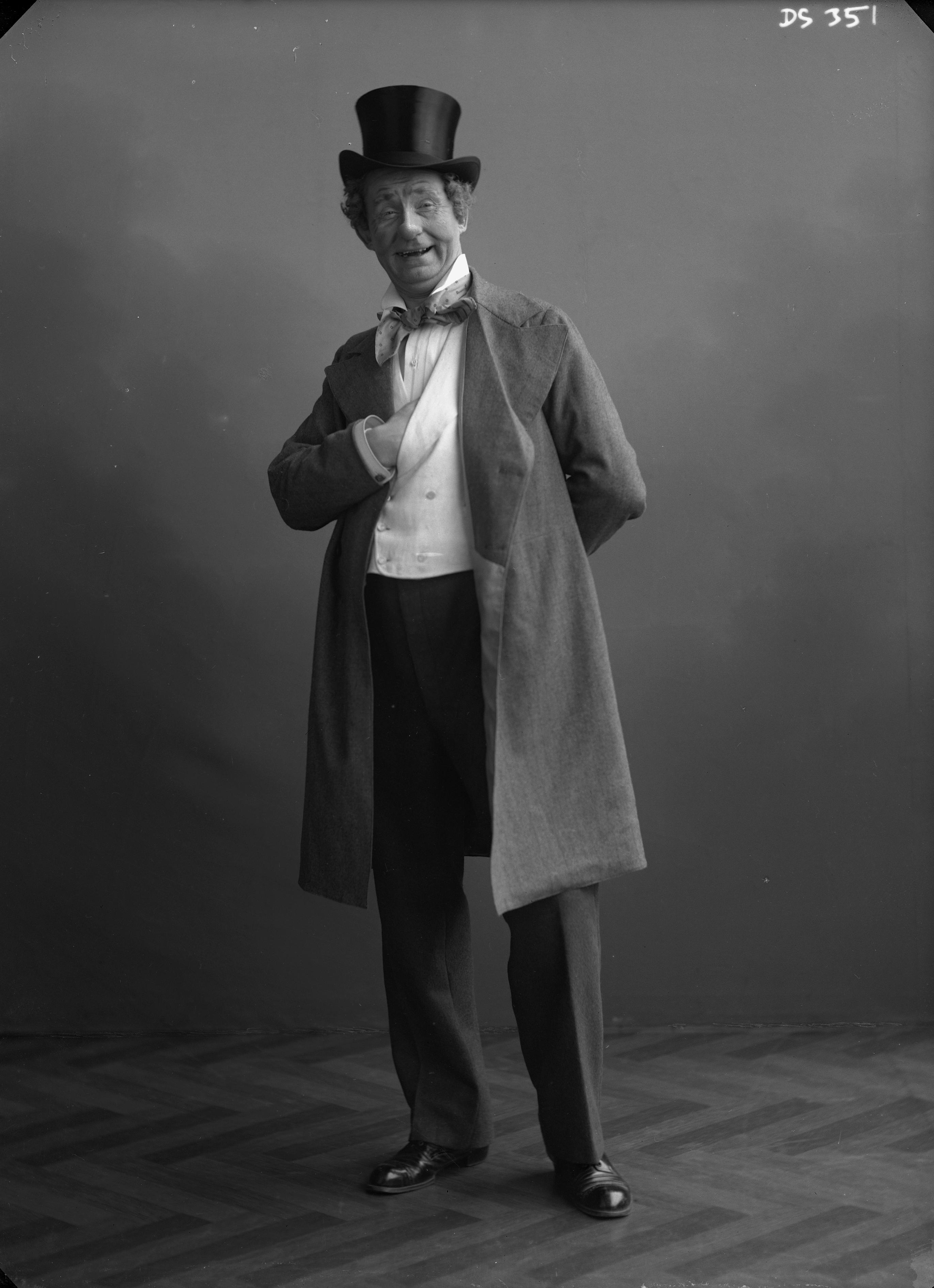 Porträtt i helfigur av medlem ur Lianders teatersällskap, "Liander".