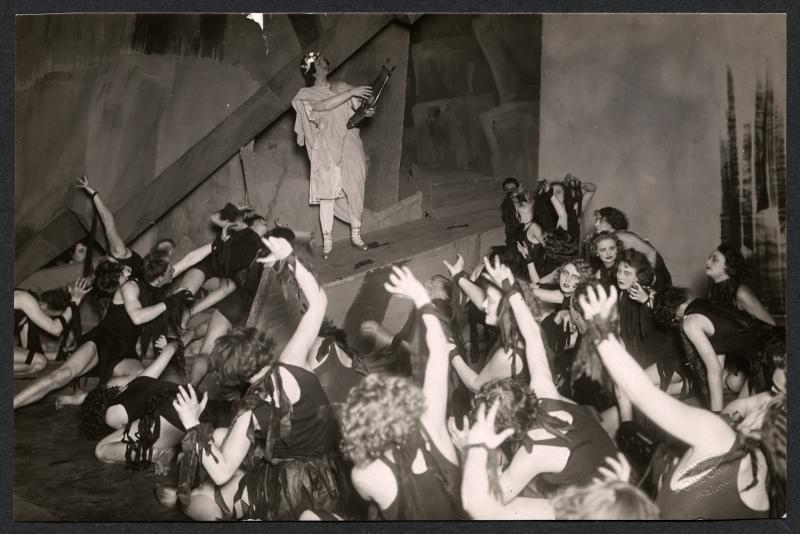 Malmö Teater Filharmonier lokalt operaförsök; Glucks Orfeus 11-13, 17-18/3-1930. Anna Tibell, Orfeus, med kör.