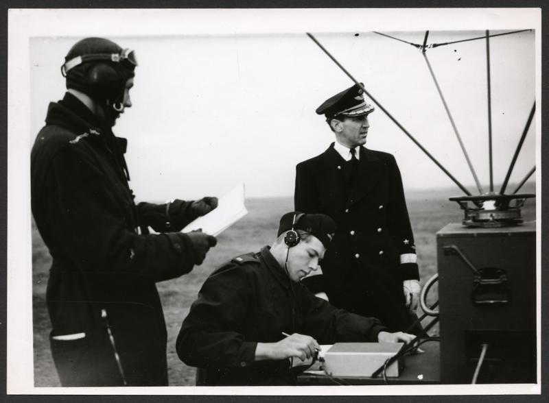- Sista officerexamen på Ljungbyhed. General nordenskjöld studerar arbetet vid en transportabel markradiopejlings station, den 14 april 1943.