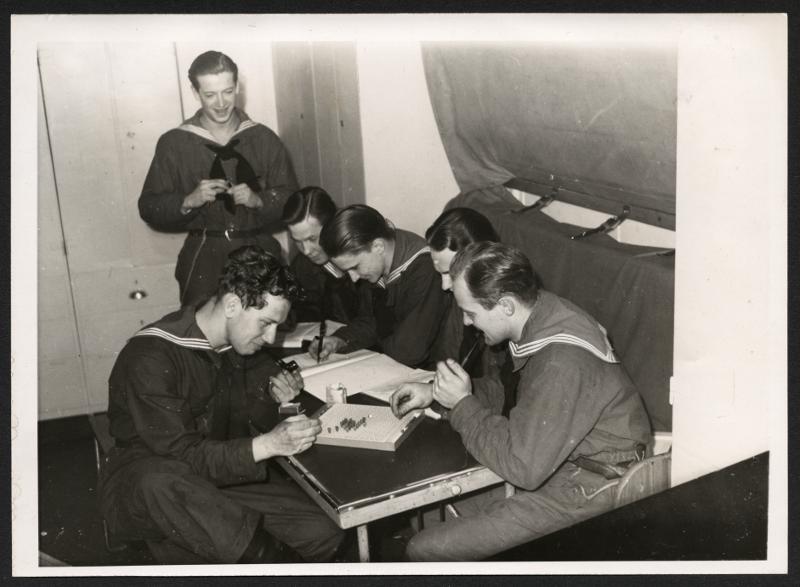 - "Fylgia" i Malmö. H.M. pansarkryssaren Fylgia har anlänt till malmö och förtöjt vid nyhamnen. Besök ombord beredes för malmöborna under söndagen. Bilden visar yngsta kuten aspitanter repsenterade av några kadetter som pluggar navigering, den 4 mars 1944.