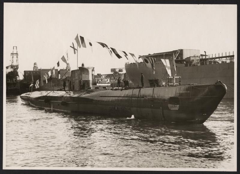 - "Nordkaparens" sjösättning. Undervattensbåten Nordkaparen sjösättning vid Kockums varv i Malmö, den 2 feberuari 1935.