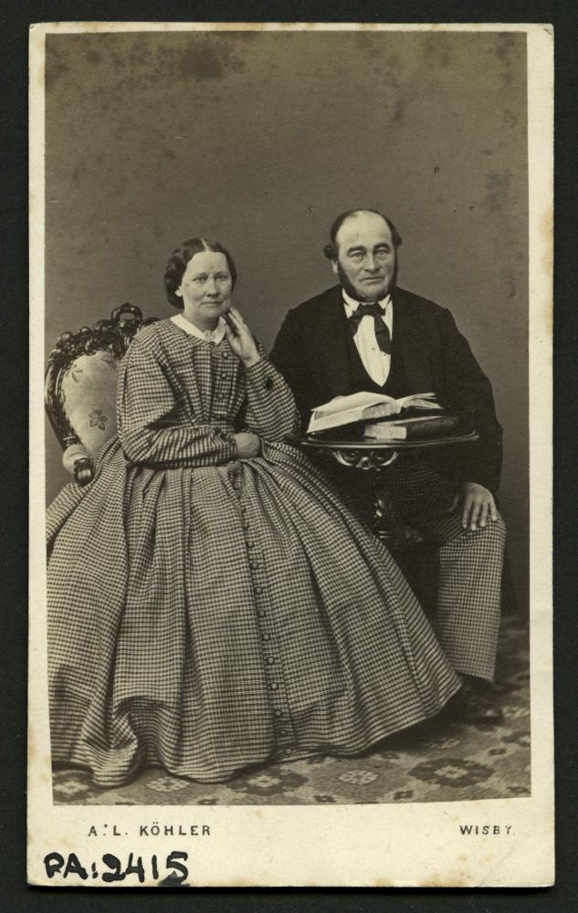 Visitkortsfotografi. Porträtt av okänd man med sin hustru.