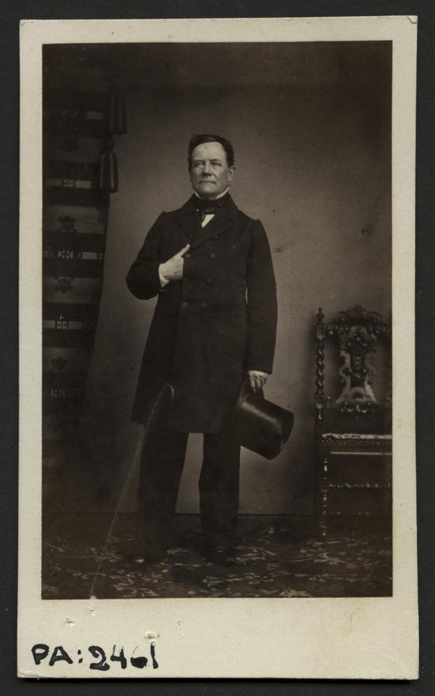 PA 002461 :: man, herrhatt, hög hatt, stol, draperi, tofsar