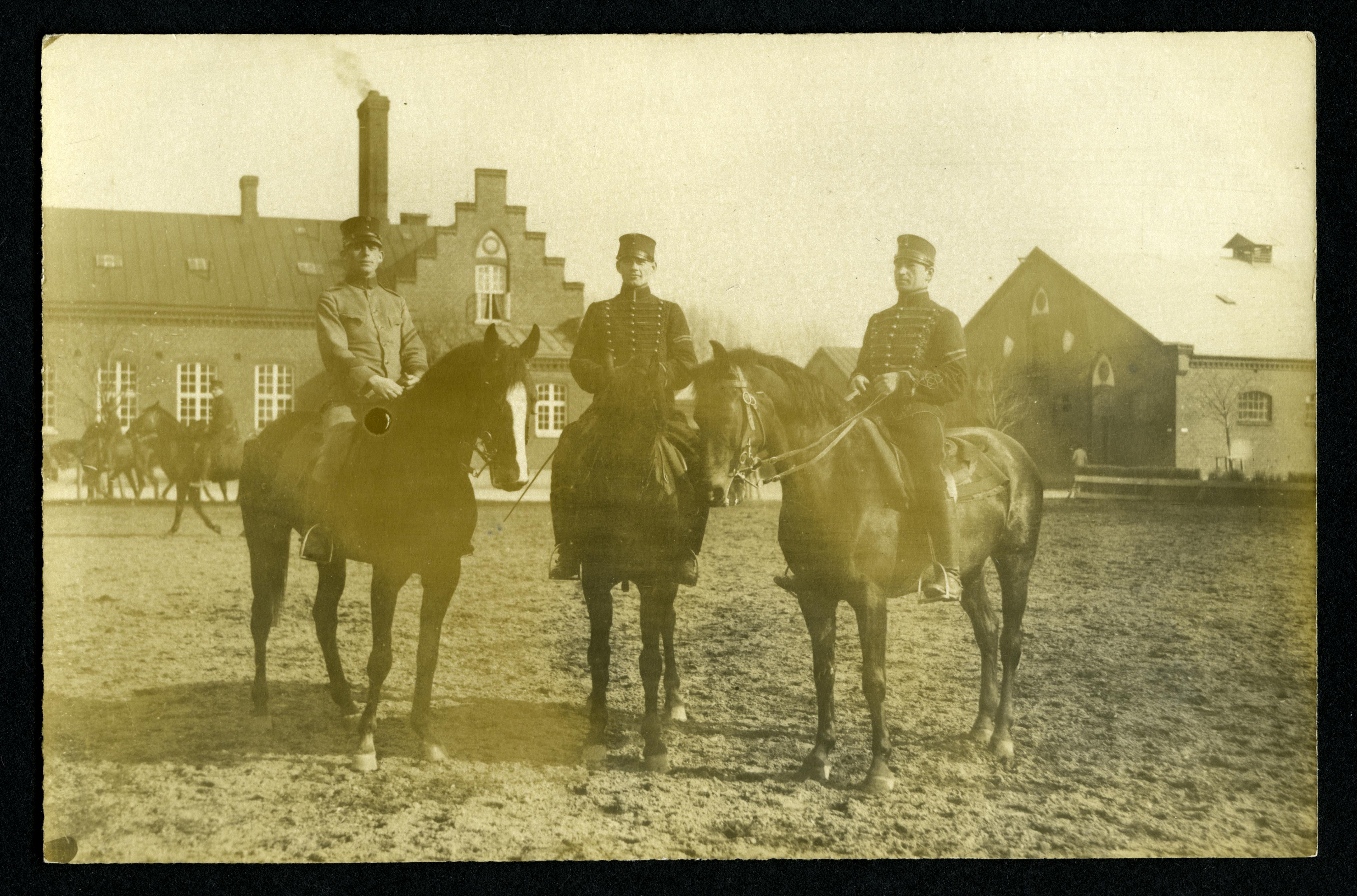 Tre husarer till häst, Ljunggren, Jakobsson plus en. 1921.