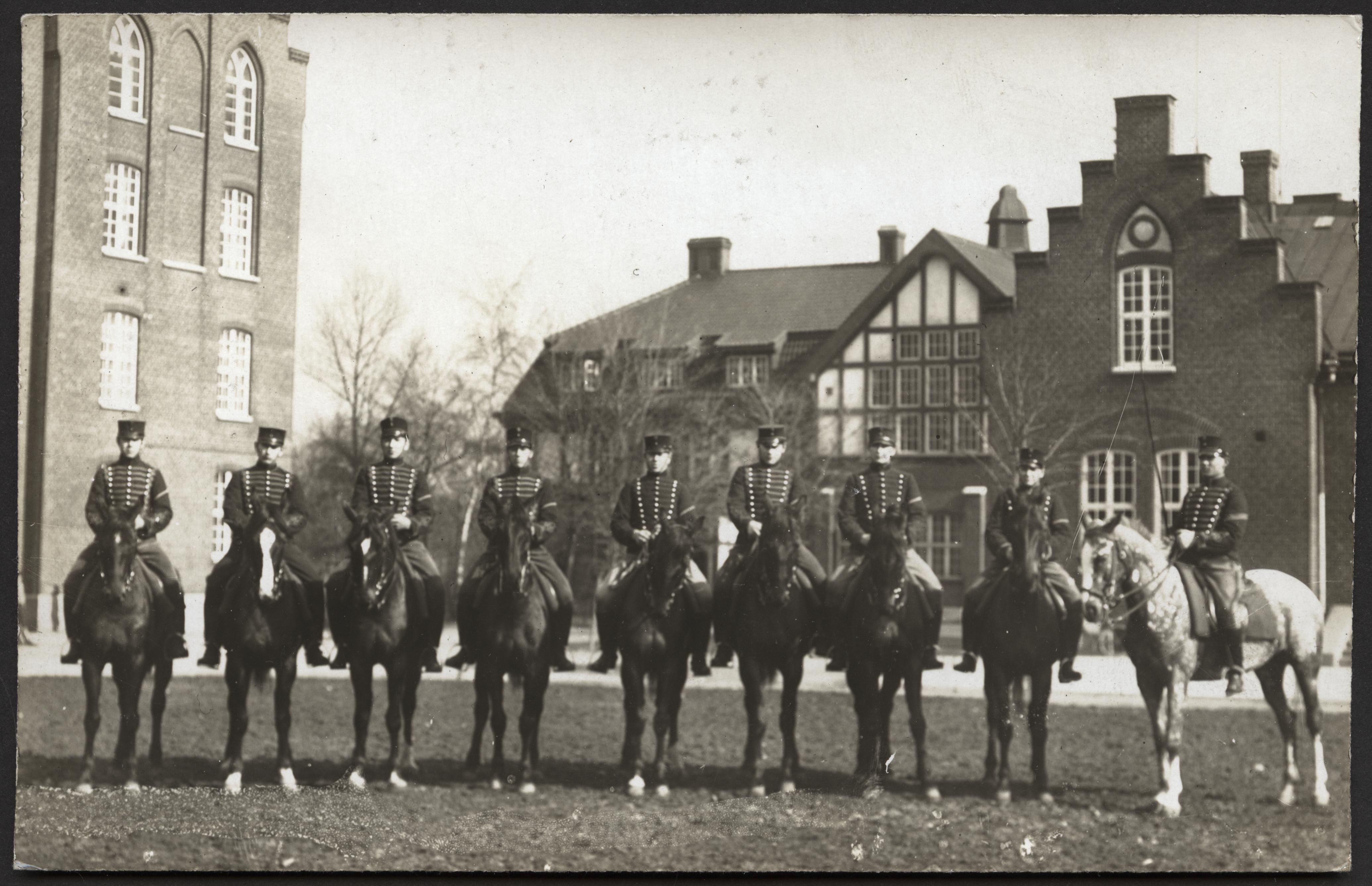 Grupp husarer till häst. Ca 1920.
