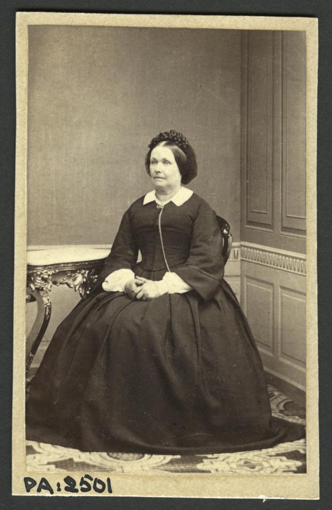 PA 002501 :: kvinna, klänning, bord, huvudbonad